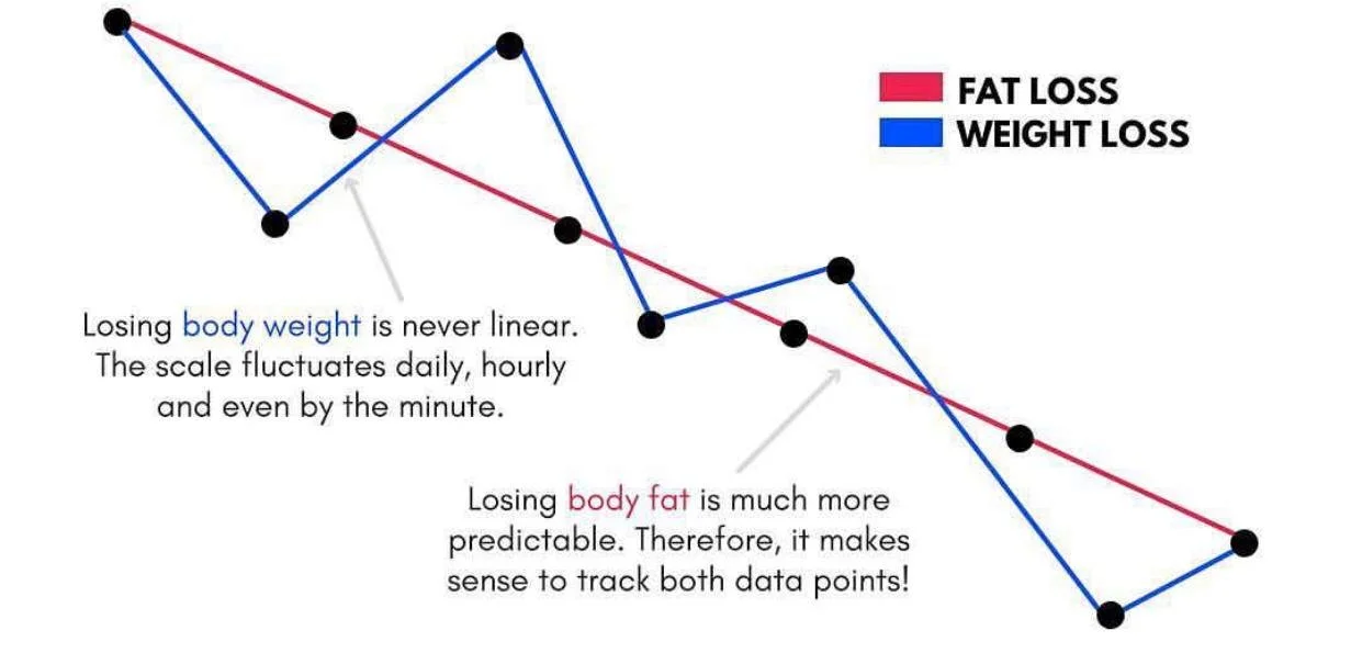 On a biweekly or monthly basis, you want to check if your average weight is consistently dropping. A consistent downward trend of 1-2lbs per week is excellent progress as this is a realistic rate of fat loss.